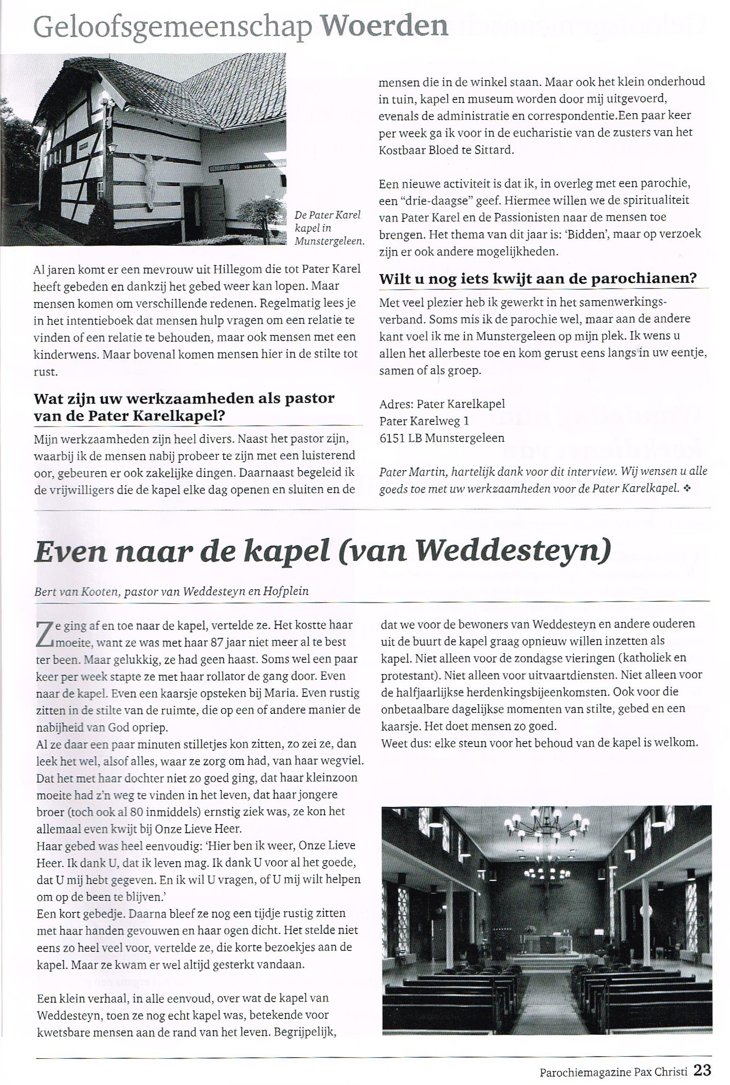 Interview met Bert van Kooten, geestelijk verzorger bij Careyn Weddesteyn en Joop Vianen, bestuurslid Stichting Kapel Weddesteyn. Dit interview is uitgezonden op 12 en 13 april 2014 op Radio RPLFM Woerden.