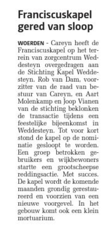 Visiedocument behoud kapel Weddesteyn - Bert van Kooten en Jantina Colenbrander